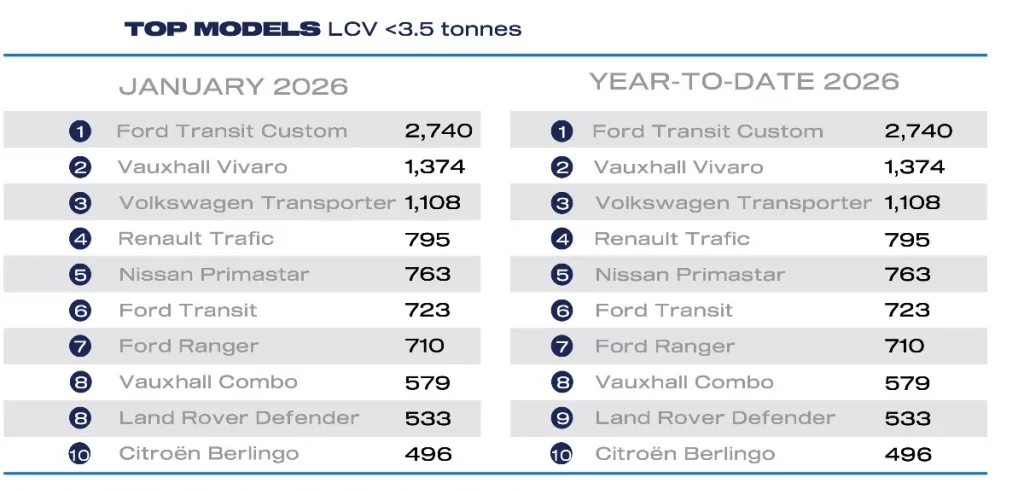 Medium vans also saw a sharp contraction, with registrations down 27.4% to 2,547 units, while the already small-volume compact van segment fell 39.8% to just 402 units.